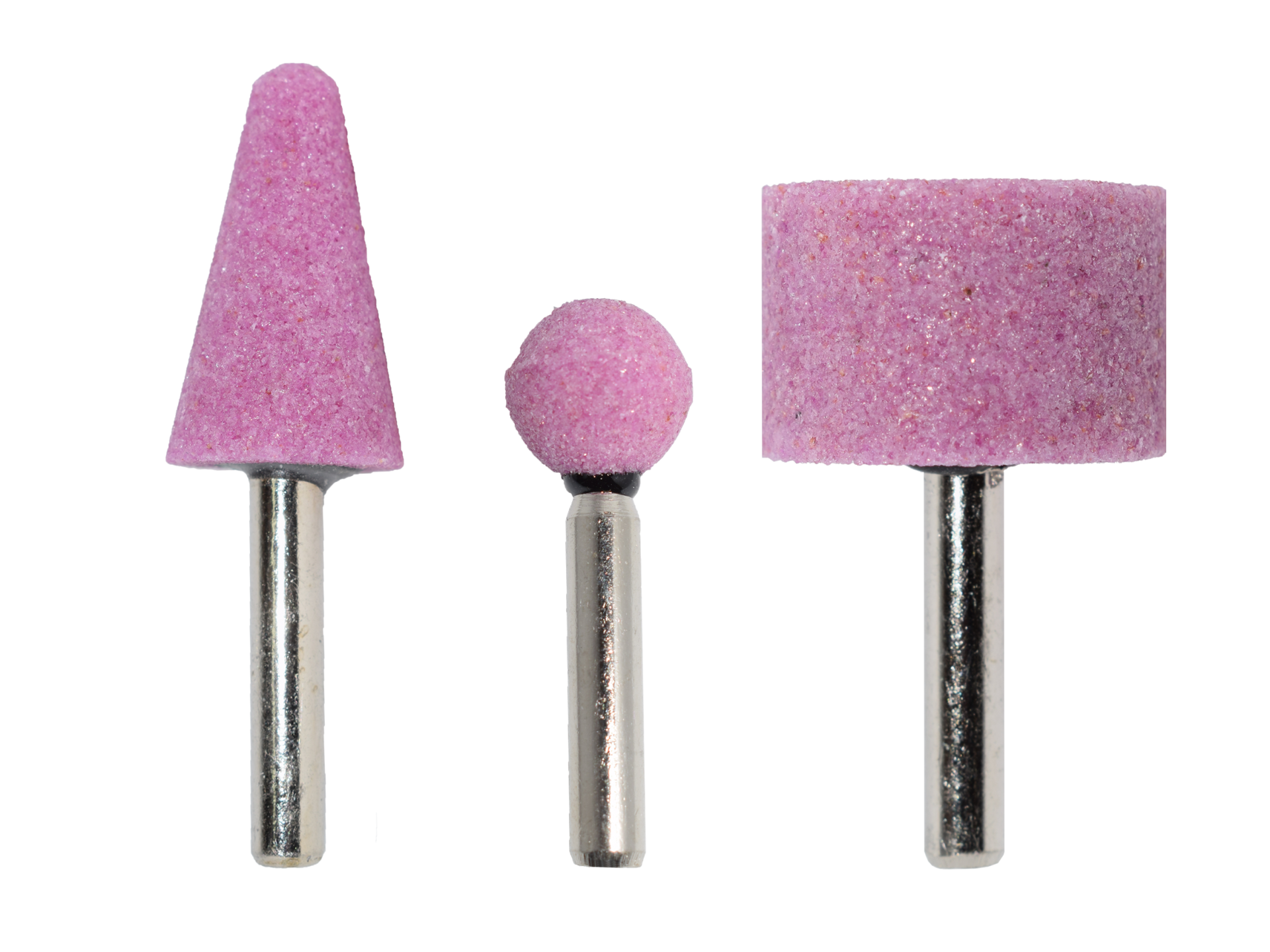 Aluminium-oxide mounted points vitrified with a ceramic binder, available in a variety of shapes and sizes. Designed for fine sanding and deburring of uneven surfaces, internal parts of pipes, cylinders or other shaped pieces. Colour: pink
