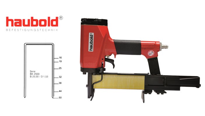 Haubold 2500-aceasta serie este utila acolo unde este necesara o capsa de latime mare , pentru o fixare ferma. Capse potrivite pentru fixarea placilor de protectie la vant pentru sarpante.