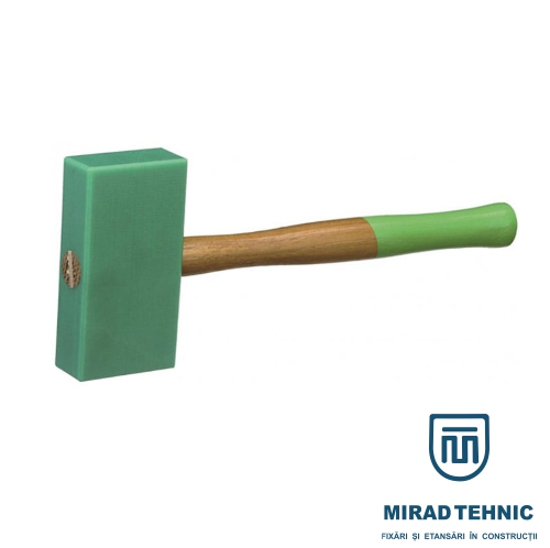 Cap din plastic de înaltă calitate 145 mm, suprafață de lovire 35×85 mm, mâner din lemn de frasin.