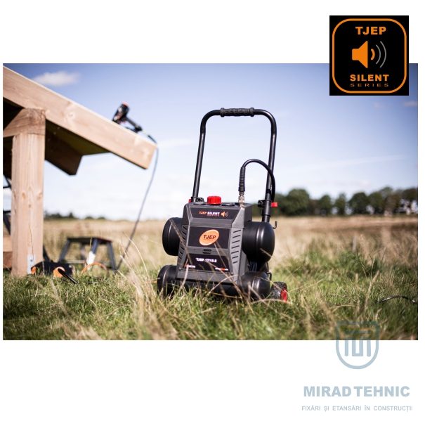Seria TJEP Silent se caracterizează prin zgomotul redus al compresoarelor fără ulei, cu nivelul ridicat de calitate TJEP recunoscut, care asigură constructorilor o utilizare fără probleme. Puteți recunoaște seria TJEP Silent Series după logo-ul Silent.
