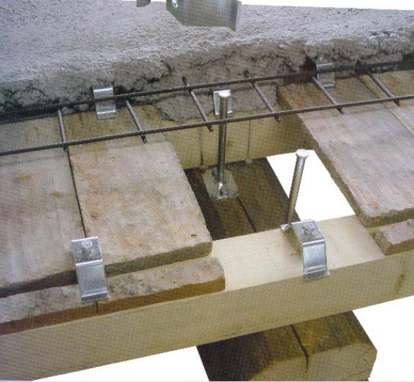 Sistemul combinat de lemn și beton este de asemenea utilizat pentru construcția de acoperisuri sau platforme plane sau inclinate.