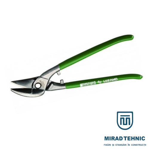 Cu acesti foarfeci confectionati din oțel inoxidabil puteți tăia tablă din zinc, cupru și oțel, precum și din oțel inoxidabil. Acestea sunt printre cele mai utilizate de acest tip. Acestea taie curb cu raze mari, cât și linii drepte, fără a îndoi foaia de metal.