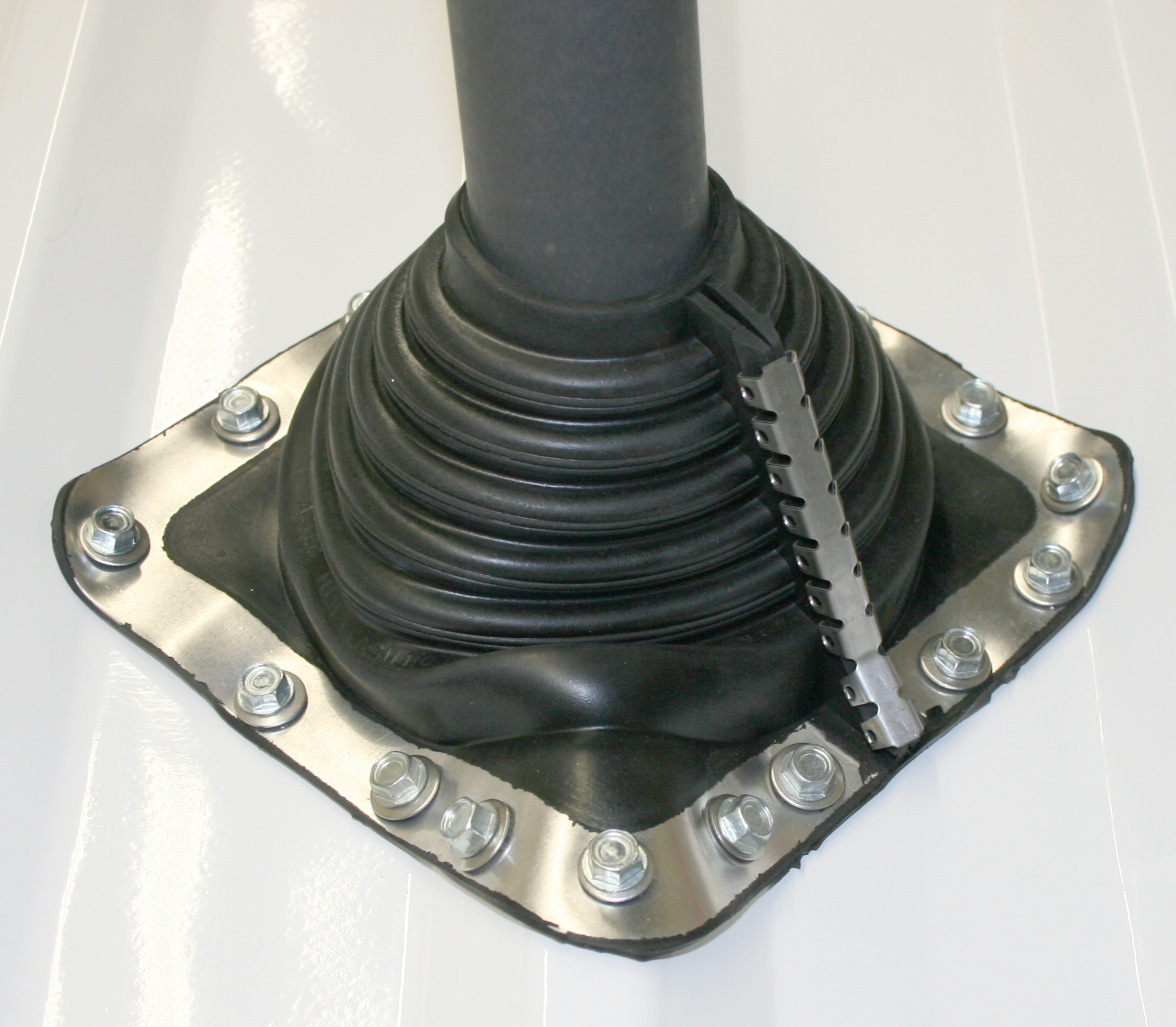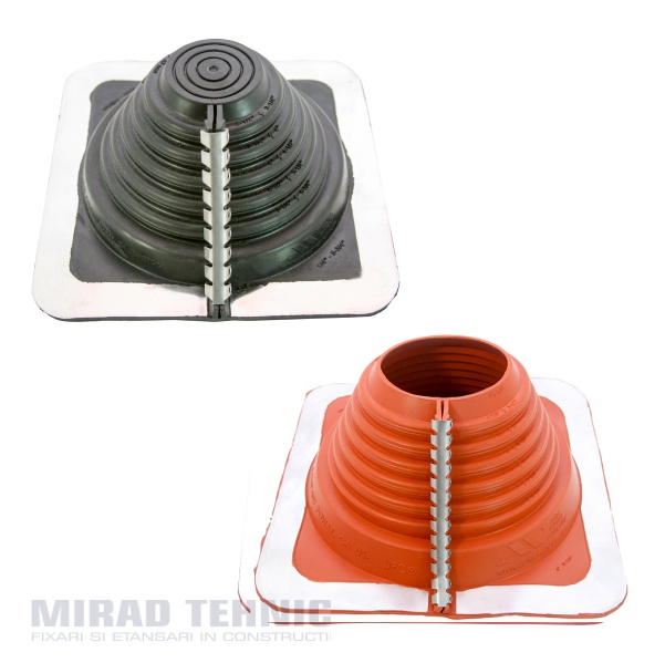 Proiectate pentru a etansa pe diverse materiale de inchidere, plane sau profilate, Master Flash® sunt usor de montat pentru o gama foarte mare de tevi, tubulatura de ventilatie sau cabluri iesite prin acoperisuri sau pereti. Se livreaza in varianta Master Flash® – STANDARD, cu montaj pe deasupra tevii, Exista variante de montaj pentru acoperisuri din tabla profilata, panouri termoizolante, tigla ceramica sau beton, membrane diverse, policarbonat sau placi ondulate.