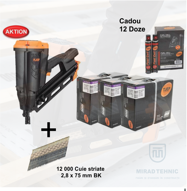 PROMO ROOFERI – Aparat TJEP GRF34/90 + 3 x 4000 cuie 2,8 x 75 mm + 12 GAZ Cadou