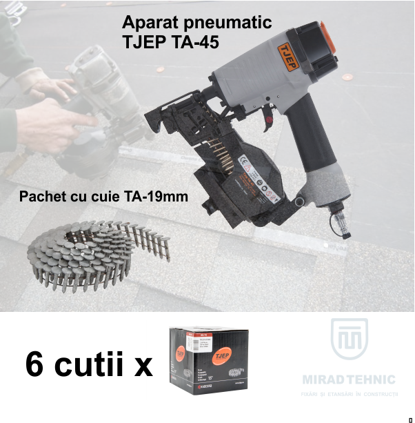 PROMO ROOFING Aparat TJEP TA-45 pneumatic + 6 cutii x 3840 cuie striate zincate