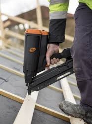 - Bate cuie pe bandă de hârtie, 34°, lise si striate ( este posibil sa nu bata pana la capat cuie striate de 90 mm in lemn ud sau lemn de estenta tare).